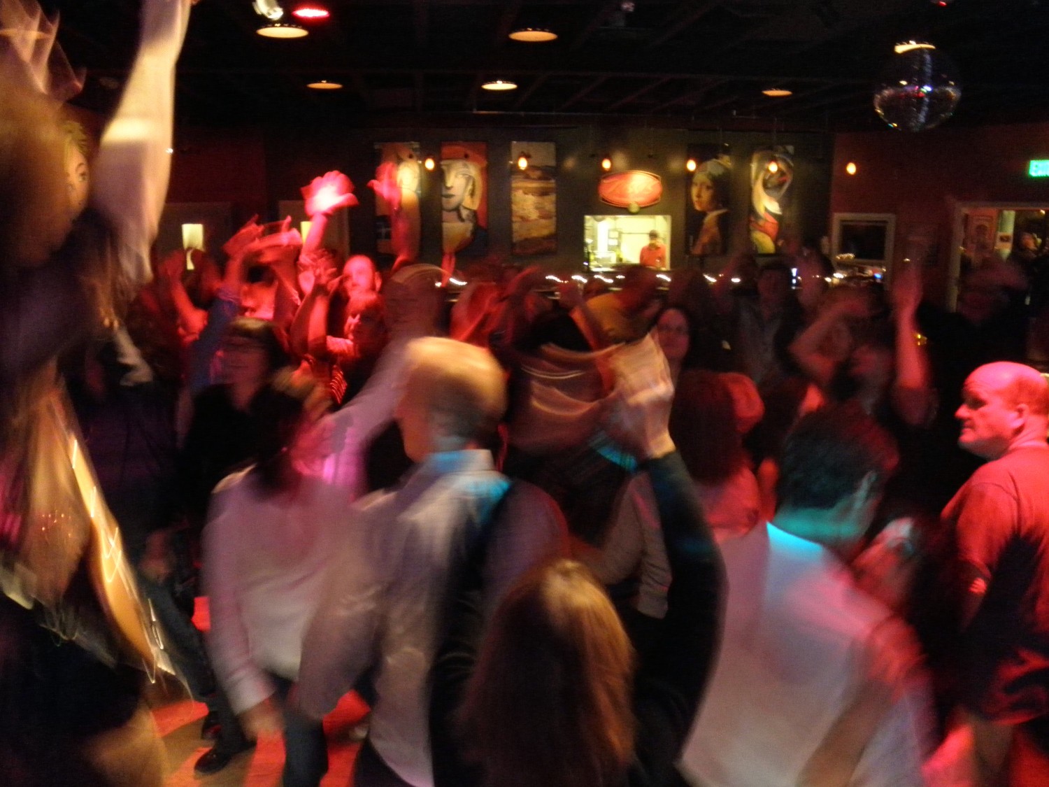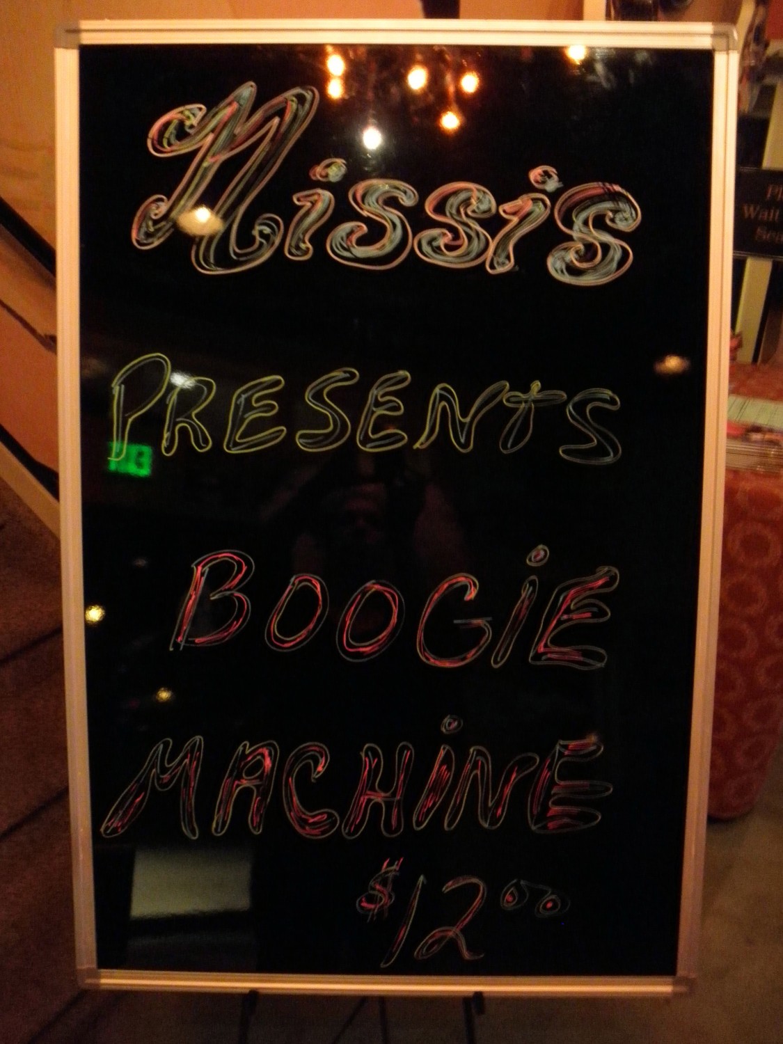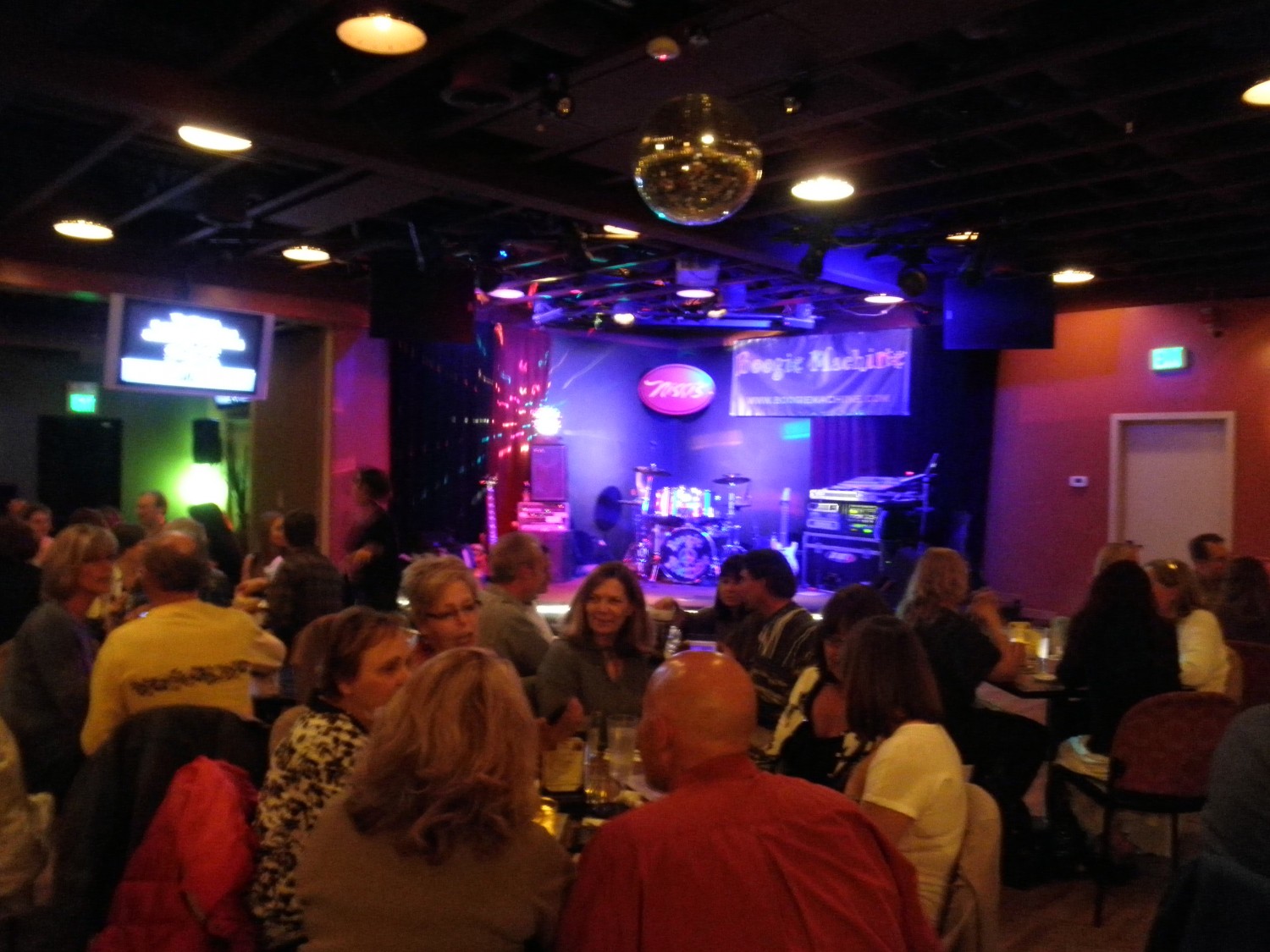 Great fun last night at Nissi’s. Seeing people who we haven’t seen in a while as well as some traveling clear from Cheyenne, WY to catch the show (thanks to uber fans Jerry and Marla). This also included who we call “hula hoop girl” who always shows up dressed to the nines in Disco attire. Nissi’s is a great place with great food and a full dance floor whenever Boogie Machine takes the stage.