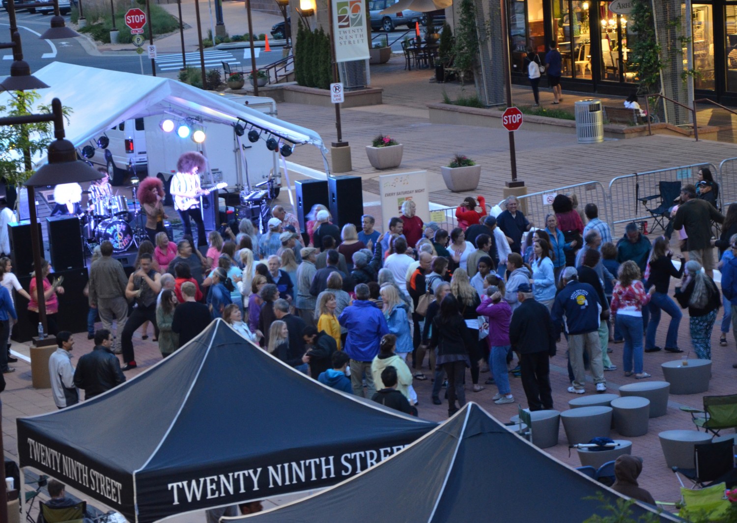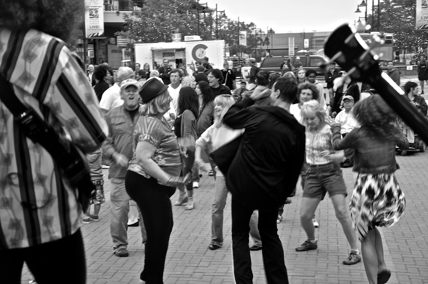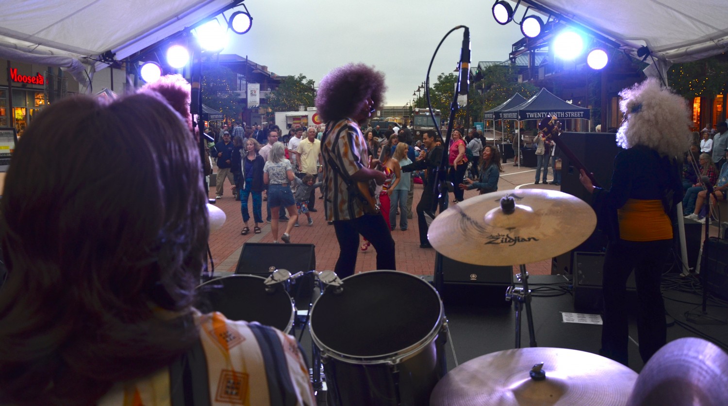 This was our first time playing the Twenty Ninth Street LIVE! event in Boulder. Despite the cooler weather, and the threat of rain, we had an awesome turnout! The crowd showed their enthusiasm by dressing up in afro’s, funky hats and glasses, and dancing with illuminated hula-hoops courtesy of Silent Disco of Boulder! Be sure to check out our calendar for upcoming shows near you and “Like” us on Facebook to see additional photos!